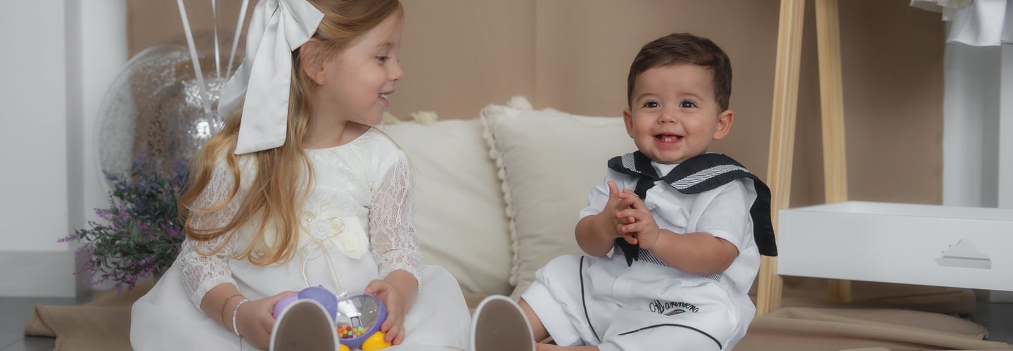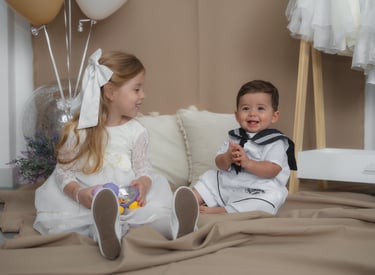 Nuestros diseños están pensados para el bienestar y la comodidad del bebé, por eso utilizamos telas hipoalergénicas, suaves y transpirables, con cortes ergonómicos que no aprietan ni irritan la piel. Cada prenda combina elegancia y funcionalidad, permitiendo libertad de movimiento sin perder la estética propia de las ceremonias infantiles.